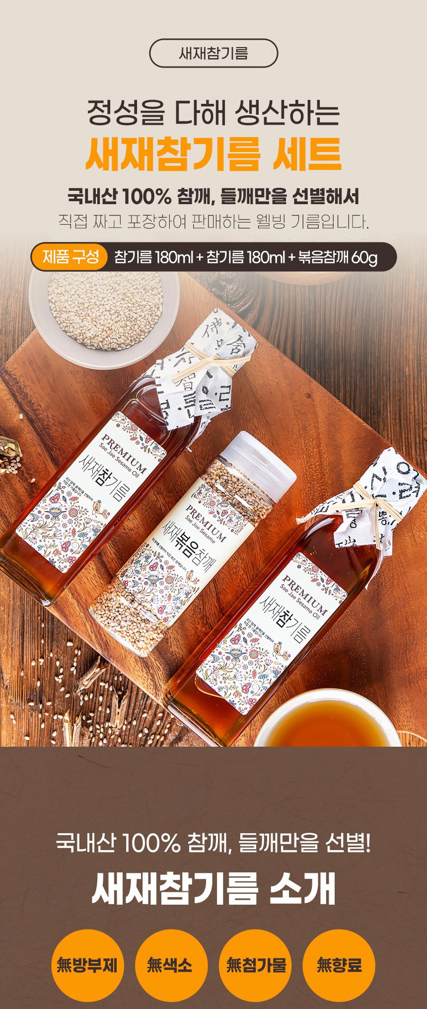 새재참기름 참기름 들기름 볶음참깨 상세페이지